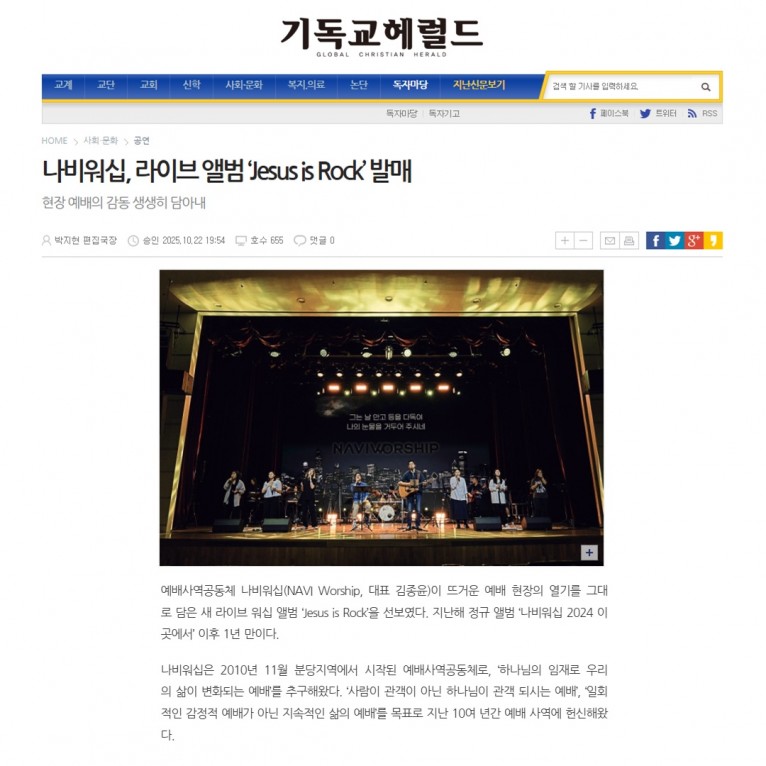 [기사] 나비워십, 라이브 앨범 ‘Jesus is Rock’ 발매(기독교헤럴드)